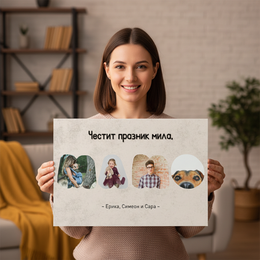 Честит празник мила МАМО - 4 снимки в букви - картина