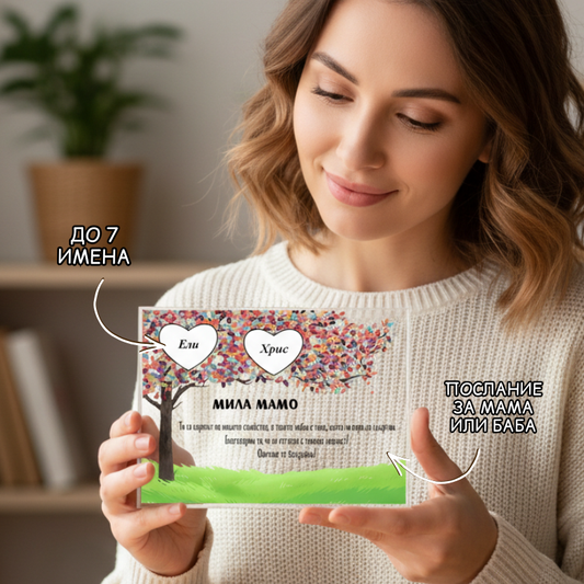 Послание за мама или баба + от 1 до 7 имена - акрилен плакет