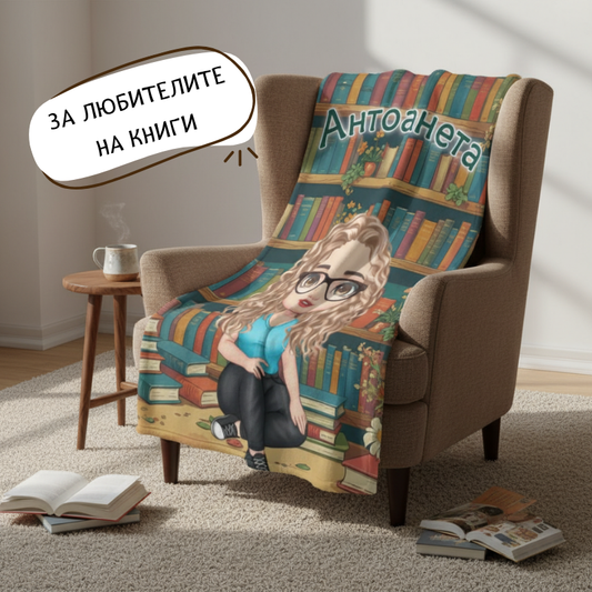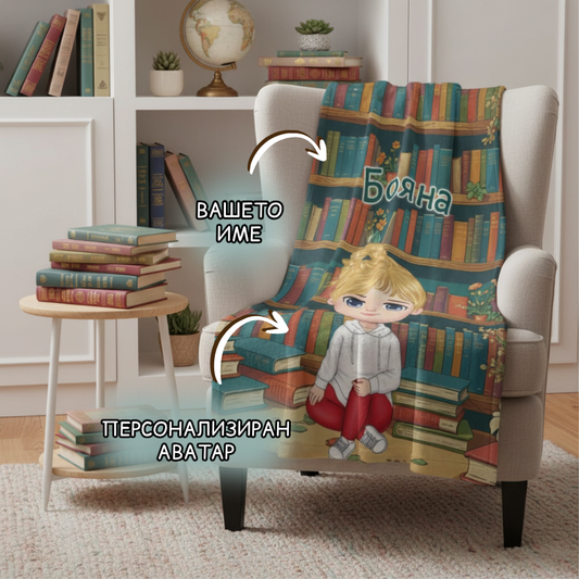 Момиче в библиотеката - поларена завивка