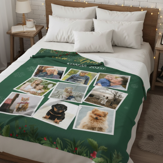 Коледно одеяло с ваши снимки и текст