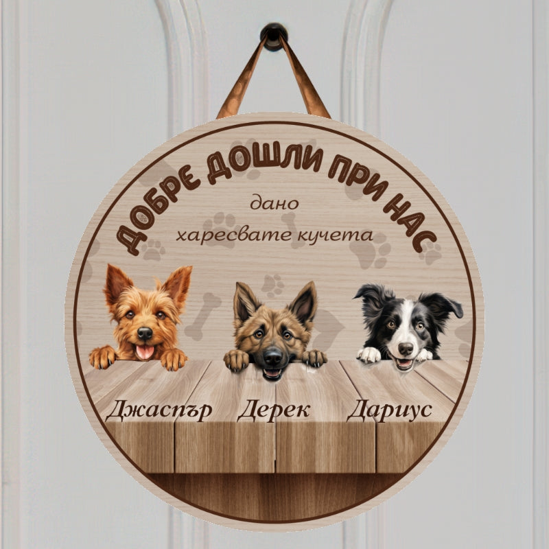Добре дошли при нас - табела за врата с кучета
