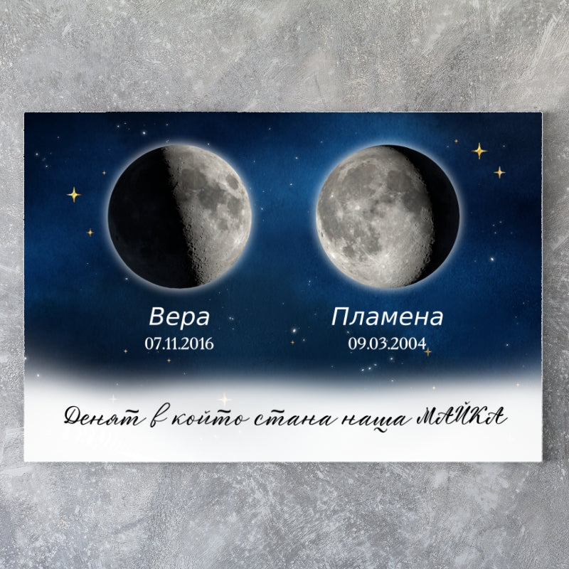 Денят в който стана наша МАЙКА - Картина с фазите на Луната
