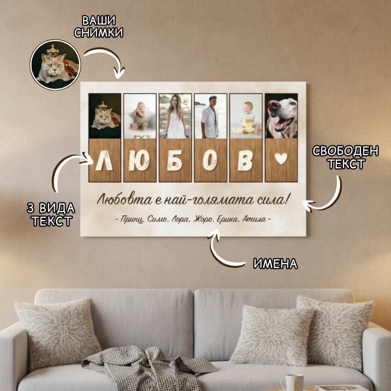 Нашата висококачествена канава от 100% памук е създадена, за да придаде живот и дълбочина на всяко изображение. Персонализирайте я със собствен дизайн, снимка или илюстрация – и получете уникално произведение, готово за окачване веднага след доставката.