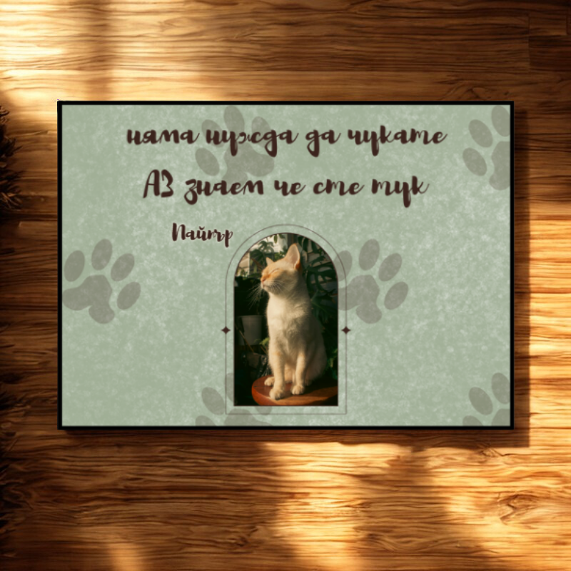 Продуктите, които са с персонализиран дизайн или елемент от дизайна не подлежат на връщане спрямо общите ни условия. Можете да върнете единствено продукт ако има явен дефект или сгрешен дизайн.